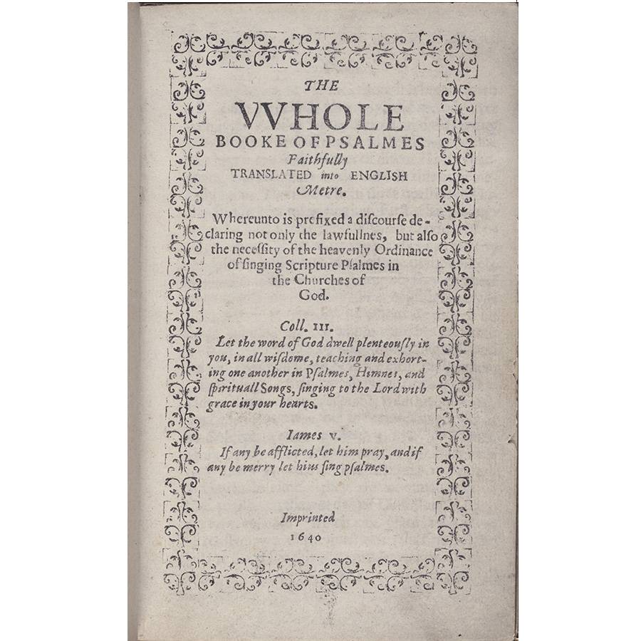 △《海湾诗篇》(Bay Psalm Book)——该书于1640年在美国麻塞诸塞州剑桥印刷,用于清教徒的礼拜,象徵着早期定居者对宗教自由的追求,并标誌着美国印刷术和文化的开端。该书仅存11本,2013年在苏富比拍卖行,以1,416万美元(约今1,860万美元)的价格成交,反映了其稀有性和历史意义。除了其宗教意义之外,《海湾诗篇》还与美国殖民历史的切实联繫,体现了早期定居者的抱负和奋斗。