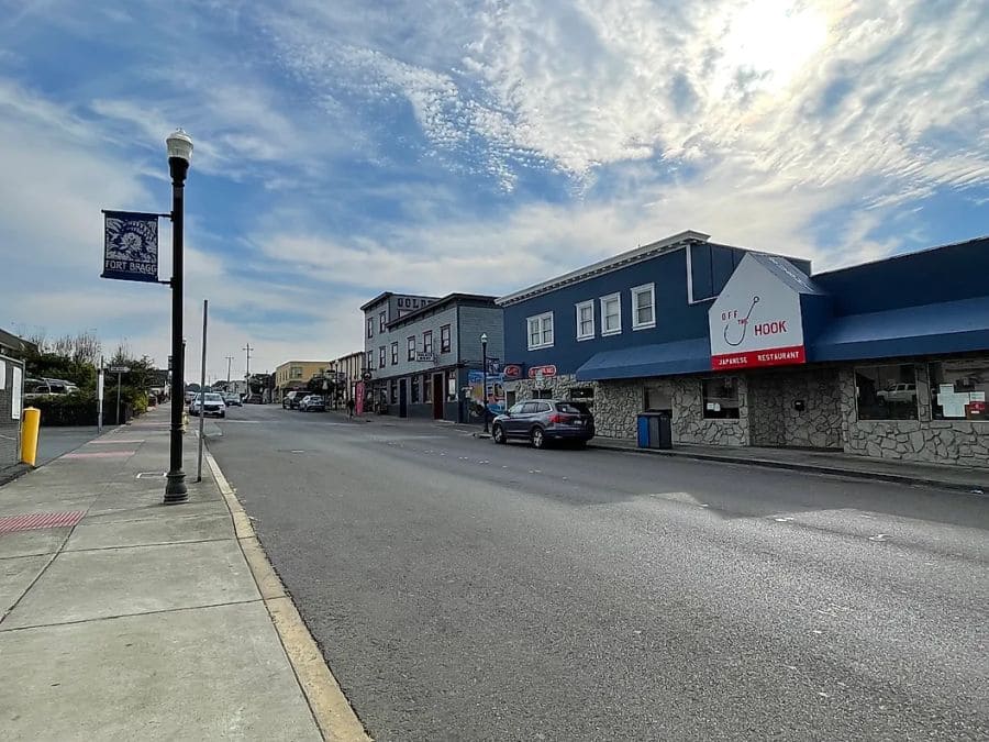 △  布拉格堡(Fort Bragg):布拉格堡位于加州北部海岸,三藩市以北约 180 英里处。该镇面向崎岖的海岸线,拥有嶙峋的悬崖和沙滩。诺约港(Noyo Harbor)至今仍是一个繁忙的渔港,船隻在平静的沿海水域穿梭。几英里以南是历史悠久的卡布里洛角灯塔(Point Cabrillo Light Station)。