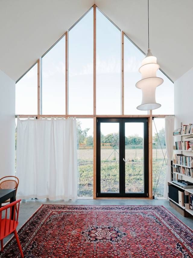地處斯洛伐克農村的重建小屋,採用傳統的坡屋頂應對當地的氣候。設計團隊從環保理念出發,使用當地材料,比如木材、粘土和秸稈,為了保證採光,一面牆由玻璃做成。房屋有85平米,需要8.5萬歐元建成。爐灶、櫥櫃和書架融為一體,嗯,做個三明治還是可以的。