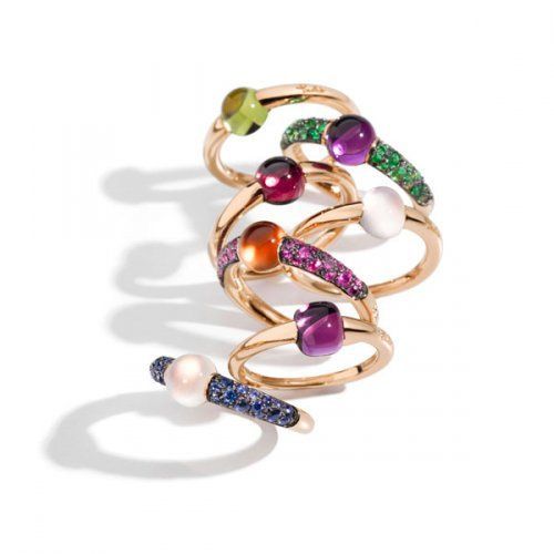 戒指以小巧身姿囊括品牌精髓:创新颠覆的彩宝设计,臻至化境的手工技艺,引领潮流的叠戴风格,这些宝曼兰朵的品牌特质都能在M’ama non M’ama系列珠宝中觅得芳踪。圆形主石与小颗密镶宝石甜蜜对话,将撞色理念极致发挥。新款戒指同样可与经典款随意组合,千变万化的色泽诠释女人的多面型格。