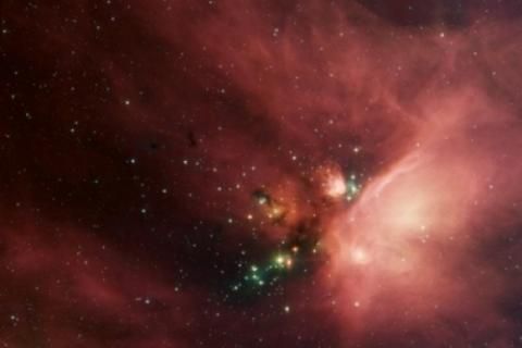 位于麒麟座的玫瑰星云又名NGC 2237,由银河系中巨大的尘埃和气体所组成,距离地球约5千光年。