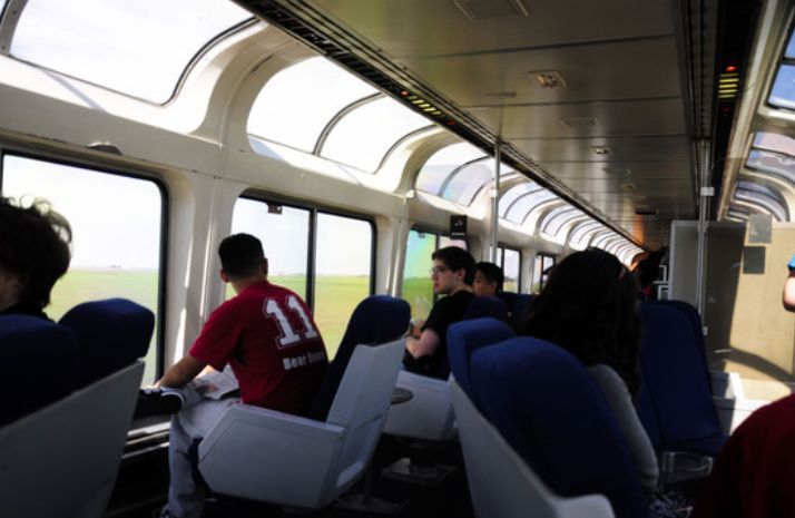 美國的火車雖然慢,但是環境極佳。拿加州微風號來說,座位超大,而且幾乎可以放平。車廂分上下兩層,上層的視野很好。而且車上設有專門的觀景車廂,兩層都是落地窗,頭頂也有明亮的天窗。傍晚從昏暗的座位走到觀景車廂的瞬間,夕陽灑向眼前聚在一起打牌聊天的人群中,那種感覺是在國內的火車上永遠體會不到的。