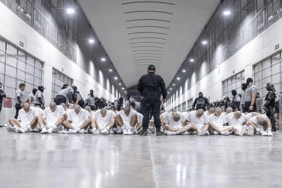 △ 3月︰这张由萨尔瓦多(Salvadora)政府发布的照片显示,3月16日,在萨尔瓦多特科卢卡的恐怖主义拘留中心(Terrorism Confinement Center),近280名被美国驱逐出境的囚犯——据称与犯罪组织有关联——被关押在那里。有一份监督机构的报告指出,这些被拘留者遭受了酷刑和虐待。