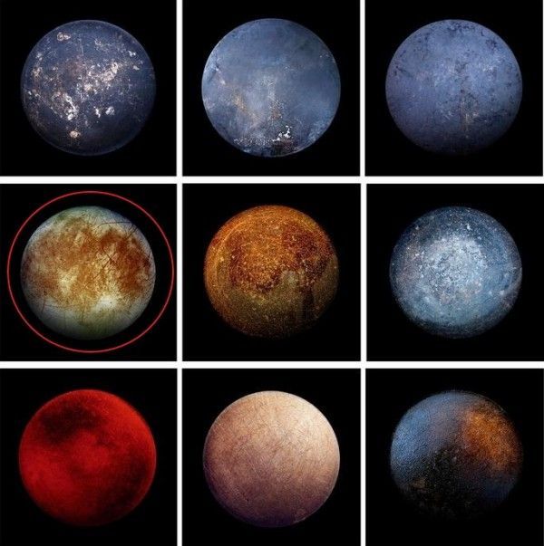 最近,NASA稍微改編了一下約納森的作品,把歐羅巴混入其中圖,要網友分辨「九星圖」中哪一個才是真正的星球。