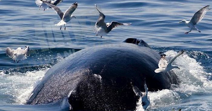 海鷗經常追逐鯨魚,它們會在空中觀察鯨魚的動態,一旦鯨魚從潛浮狀態露出水面,它們就飛下來了。皮膚和鯨脂都是海鷗的最愛,從1970年代以來,到2011年,美國鹽湖城猶他大學海洋學家發現被攻擊的鯨魚數量從2%增加到99%,幾乎每條鯨魚都遭遇海鷗的襲擊,這是以往從沒見過的。
