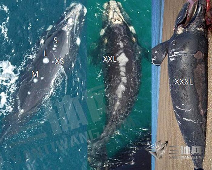 圖註:一些遍體鱗傷的鯨魚,背部都是啄過的洞。