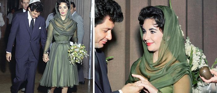 (第九套)这是伊丽莎白•泰勒的第四次婚礼,于1959年,她穿着绿色的,而不是传统的白色礼服。