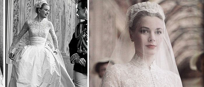 (第十一套)其中一件最具代表性且典雅的婚纱,是格蕾丝•凯莉的在1956年的穿着,当时她嫁给了摩纳哥王子雷纳三世。那件礼服现在为费城的艺术博物馆所有,这件礼服奠定了礼服的V型领口和长、白色的花边袖子的趋势。