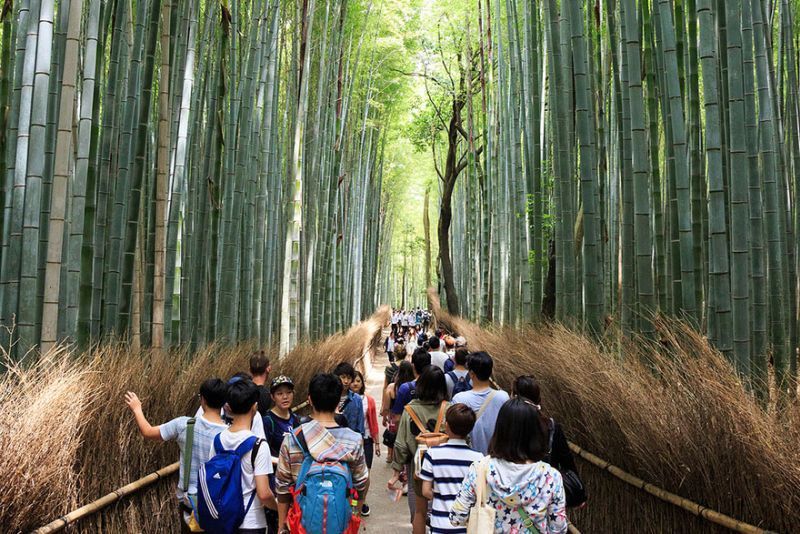 探索日本京都嵐山的竹林(Arashiyama Bamboo Forest)。 ▽