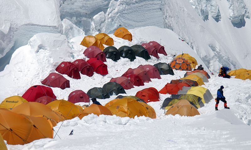 在喜馬拉雅山(The Himalayas)上露營。 ▽