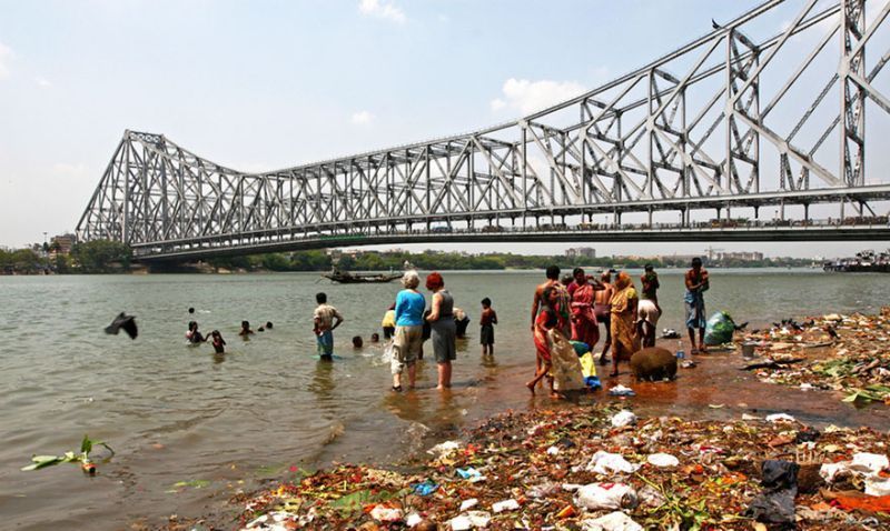 散步在印度加爾各答,豪拉橋(The Howrah Bridge)。 ▽