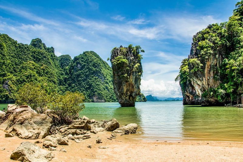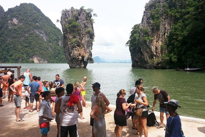 在泰國的詹姆斯邦德島(James Bond Island)度假。 ▽