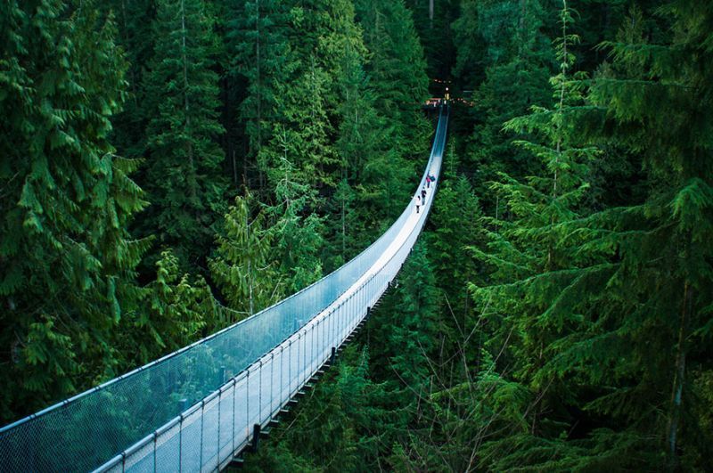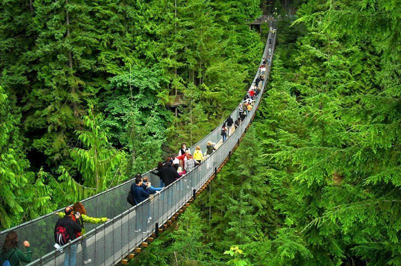 在加拿大溫哥華,走過卡皮拉諾吊橋(Capilano Suspension Bridge)。 ▽