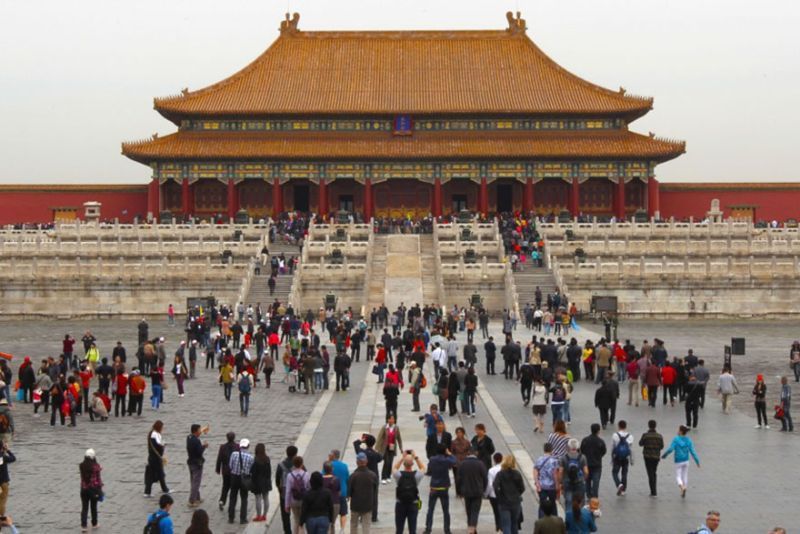 在中國北京,參觀故宮(Forbidden City)。 ▽