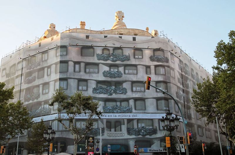 在西班牙巴塞羅那(Barcelona, Spain),欣賞高迪(Gaudi)的米拉之家(Casa Mila)的建築細部。 ▽