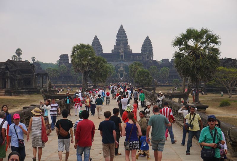 遊覽柬埔寨吳哥窟(Angkor Wat)的古廟。 ▽