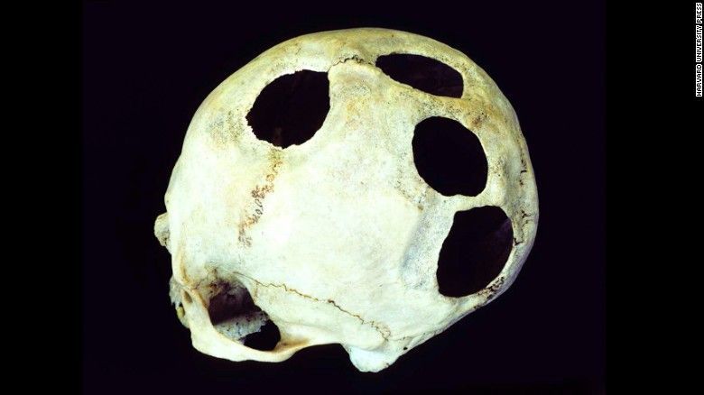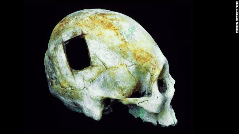 投石器石頭,棒棍以及許多頭部重擊在遠古的秘魯用投石器投擲,球棒打的骨折,數不盡頭部的傷。Verano說:“那是個艱難的地區,人們總是不停被打。”在檢查超過800個秘魯人有洞的頭骨後,他結論出因為在這個區域的暴力讓他們有天然的實驗室發展出原始的手術方法來治療頭部的傷。