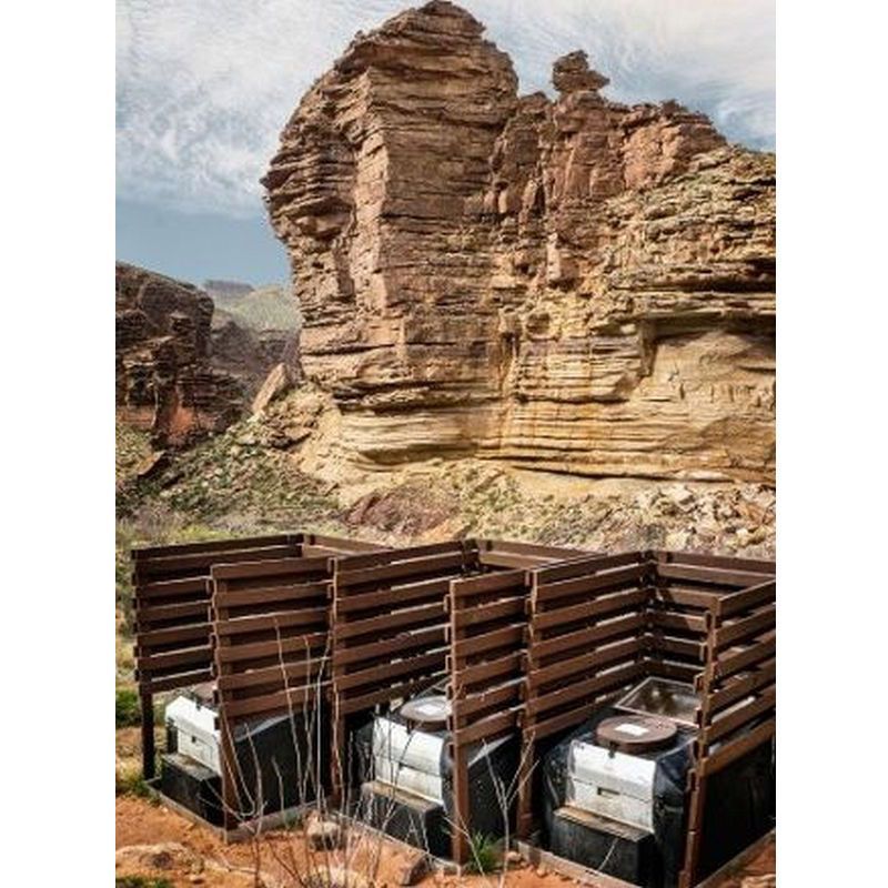 美國,亞利桑那州,大峽谷國家公園(Grand Canyon National Park),托恩托步道(Tonto Trail): 大峽谷高聳的山壁,並沒有感動建造廁所的人,只蓋了個精簡版的營地廁所。