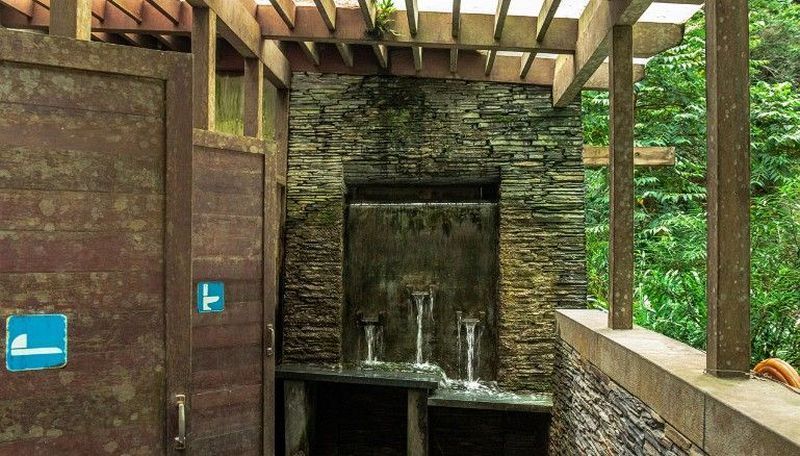 台灣,太魯閣國家公園: 在白楊瀑布步道上,這個廁所肯定不缺水。