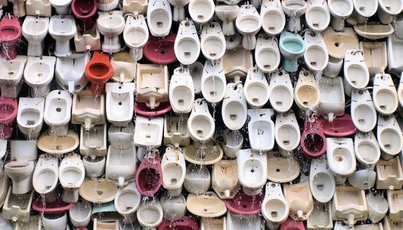 中國,廣東省佛山市,廁所噴泉: 這個用10000個廁所組成的沖水噴泉,是在慶祝佛山市作為世界瓷都的角色。這是中國藝術家舒勇的作品。