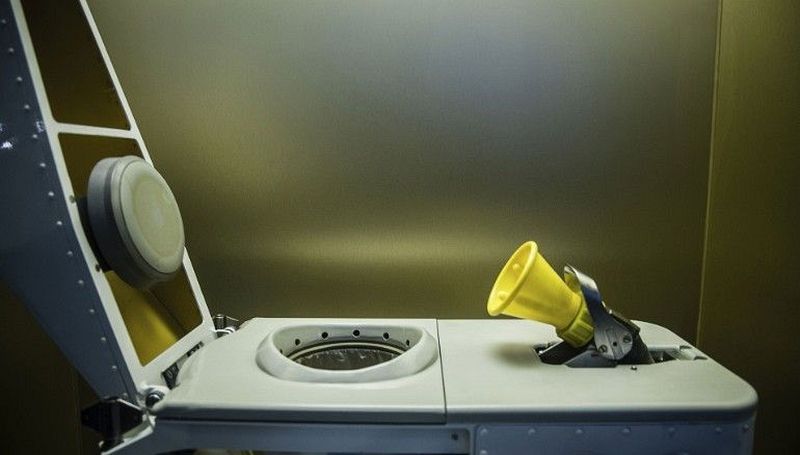 太空廁所的原型: 這個電力吸取的設施,是要幫助宇航員在零重力的情況下,完成他們應該要辦的事。