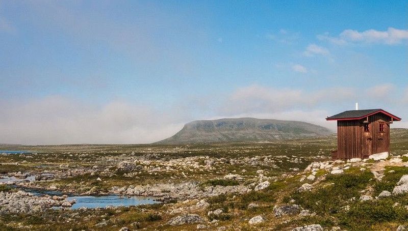 芬蘭,埃農泰基厄(Enontekio): 位於歐洲最北端的登山步道上,偏遠的極地小屋,對著的是薩爾米瓦拉山谷(Salmivaarafeng)美景。