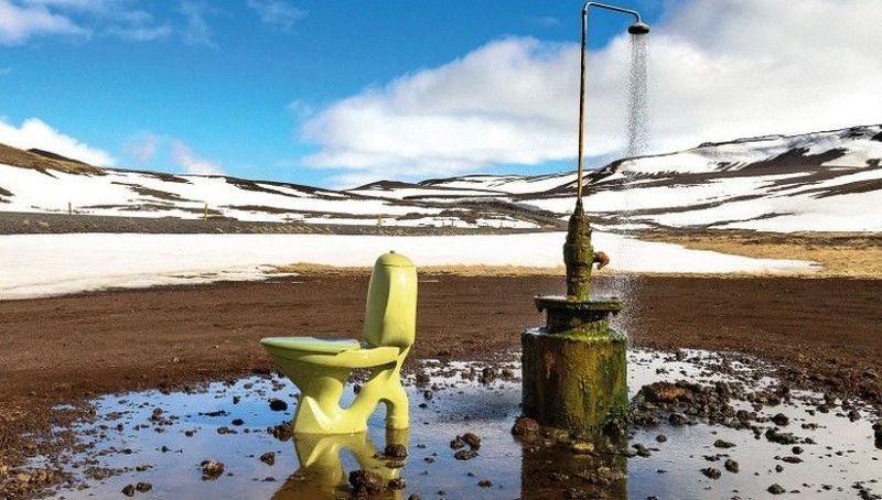 冰島,卡拉夫拉(Krafla):洗手間的水源似乎來自地熱溫泉,所以不用擔心馬桶沖水的問題。