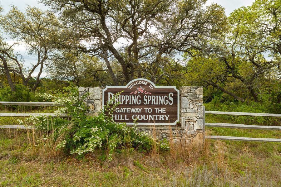 Dripping Springs, Texas USA - April 6, 2016: Pretty welcome sign upon entering this small town in the Texas Hill Country in Hays County in scenic central Texas.