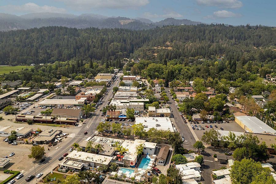 High quality aerial photos of Calistoga, California, a small rural town in Northern California known for its premier wineries.
