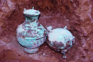 2010年12月10日,考古专家从铜鼎中夹出一块动物骨头