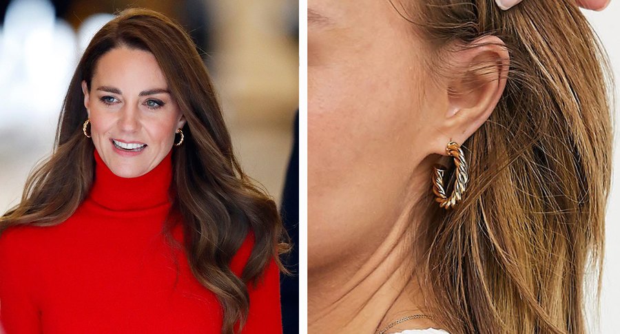 △ 凱特王妃鍾愛簡約的金色耳環。據報導,這款物美價廉(售價20美元)的耳環,正是劍橋公爵夫人(凱特王妃)鍾愛的款式。
