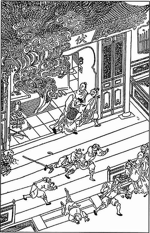 在中國名著小說中,也有類似的情節。在《水滸傳》楔子〔張天師祈禳瘟疫 洪太尉誤走妖魔〕中寫道,欽差太尉洪信奉旨到江西龍虎山請天師進京除災,結果到了山上的上清宮,錯過了張天師卻仗勢闖入鐵有封條的伏魔大殿,再放倒石碑,掘開石板,結果地穴中冒出一道黑氣,直升空中,散作百十道金光,望四面八方投胎去了。36個天罡星,72個地煞星,共108個當初被老祖天師鎮鎖住的「魔君」,全部走脫到人間,成了後來《水滸傳》正文中的108名梁山泊「好漢」…。