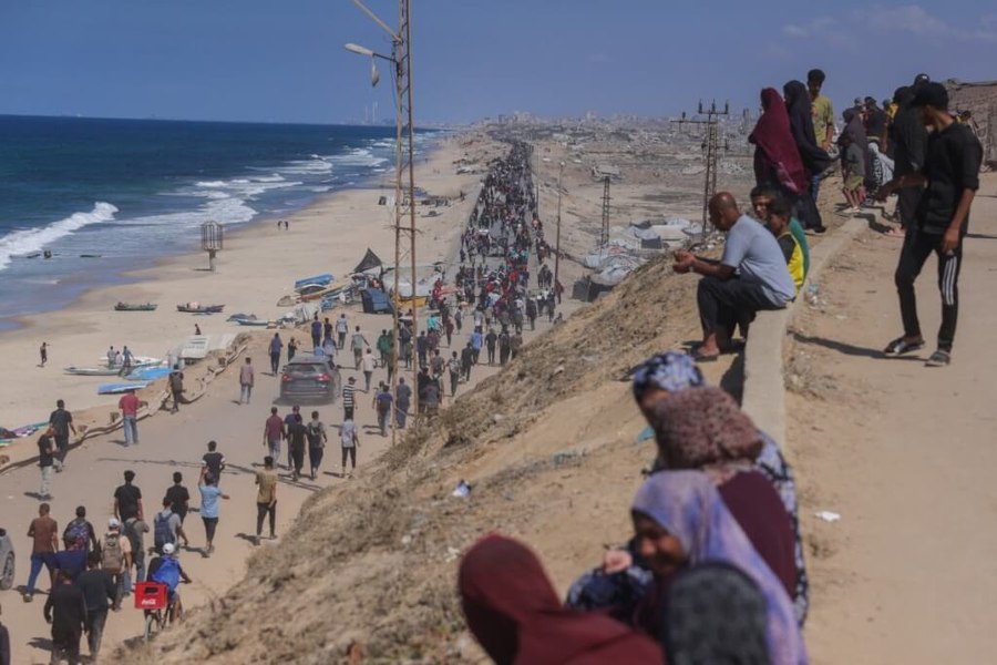 △ 10月︰以色列(Israel)和哈馬斯(Hamas)達成停火協議。幾天後,哈馬斯釋放了剩餘的20名以色列人質。此後,停火協議一直不穩定,雙方互相指責對方違反協議。圖為大批巴勒斯坦人沿著加薩走廊的濱海道路行走。