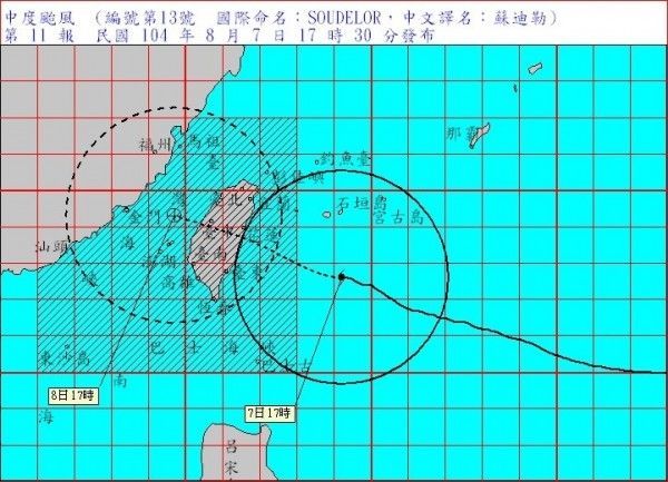 氣象局路徑圖顯示,蘇迪勒大約在下午2時左右中心點會從台灣中部地區離開。目前各地災情頻傳,路上隨處可見路樹倒塌或是招牌的殘骸,氣象局提醒,若有室外懸掛物、招牌、圍籬及鷹架等應加強固牢,陽台之盆景等應妥善放置。