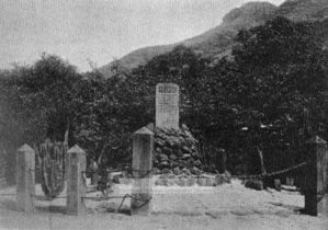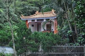 北白川宮能久親王瑞芳御舍營所紀念碑,後方山峰可能是秀崎山