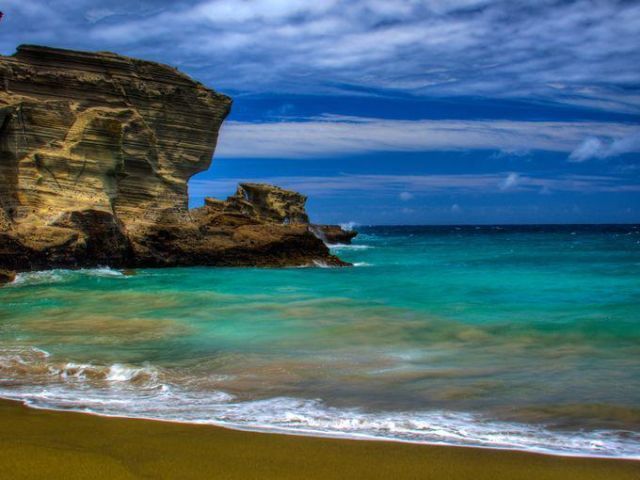 位於夏威夷摩洛凱島的帕波哈庫沙灘公園,沙灘呈黃色,更準確的說應該是金色,景色極其迷人,讓人遙望而不可及。當太陽落山時,海面金光粼粼,壯麗奪目,一派美麗景象。