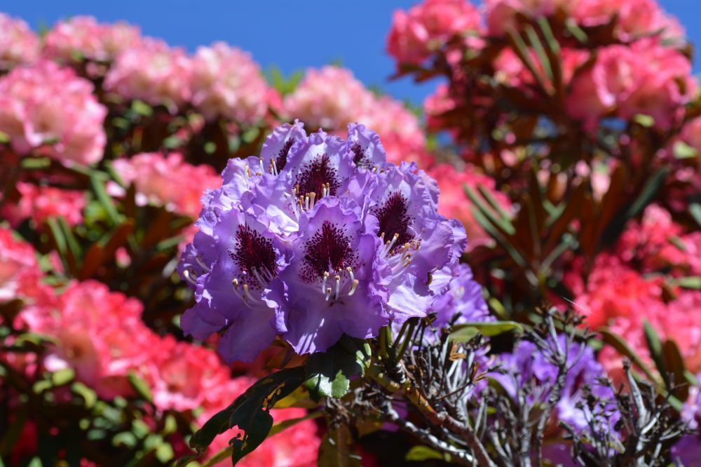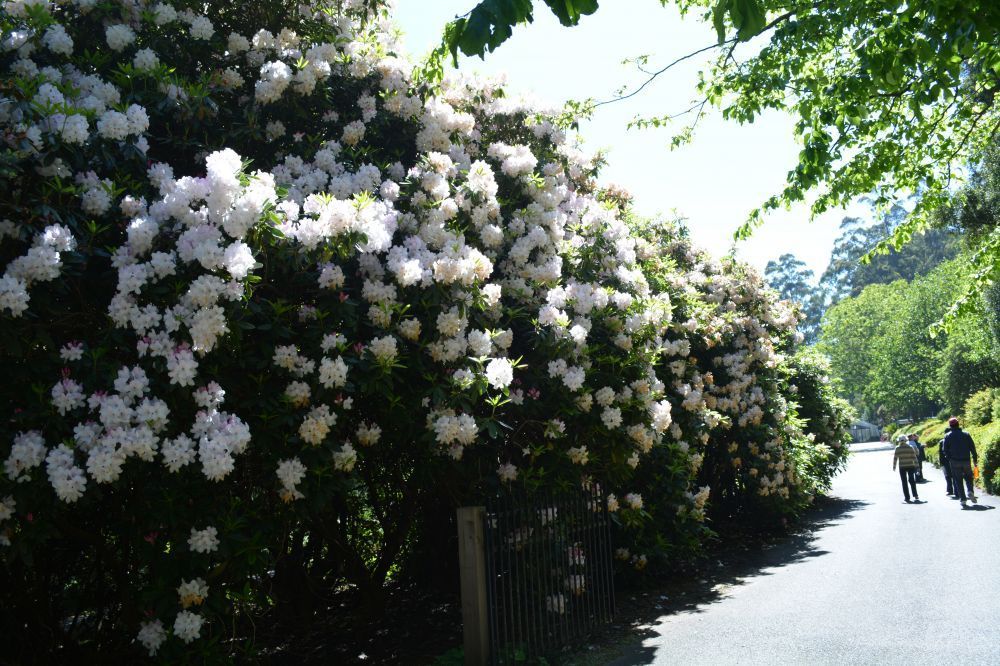昨天,天氣晴好,像久違的夏季來臨,我和公婆遊覽了墨爾本著名的杜鵑花公園National Rhododendron Gardens。杜鵑花公園靜靜隱蔽在丹德農山脈裏,從Glen Waverley 出發沿著山間公路駕車隻需30分鍾的車程,經過一片高聳直立的森林後就來到了另一個幽靜的世界。春夏之交,山林裏鳥兒歡鳴,花香濃鬱,遊人稀少,樸實無華的園門由黑色的鐵柵欄圍起,像是走進一戶普通人家的宅院,院裏還有盆栽的蘭花可以零售。沿路走進去,迎麵的是一排排白色杜鵑花樹,團團朵朵花開燦爛,氣味芬芳,路兩旁點綴著各種色彩斑斕不知名的野花野草。公婆說說笑笑笑聊著家常事慢慢走著跟在後麵,明媚和煦的陽光灑在他們的肩膀上。他們風雨同舟五十多年,養育了3個子女,退休之後就像家族的萬能膠哪裏有漏洞哪裏補,在幾個城市間穿梭忙碌為子女的家庭後勤補缺,現今的孫輩也長大進入了青少年時期。我拿著相機,在花樹間鑽進鑽出,欣賞拍攝園內培育的杜鵑花新品種,一邊選用五彩繽紛的杜鵑花做背景,為公婆尋找可以讓他們入畫的場景並拍了許多很有紀念意義的照片。