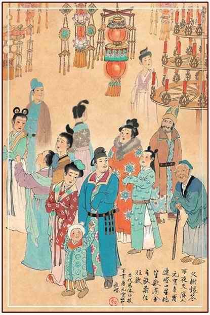 正月十五日是一年中第一个月圆之夜,故称『元(月)宵(夜)』。道家以正月十五日为上元节。早在汉代已有庆贺元宵之俗,至唐规模更为盛大。