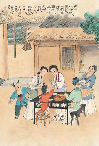捉弄米粉状蚕丝,内藏吉语待尔食。喜得佳兆虽自设,依然欢乐不可支。