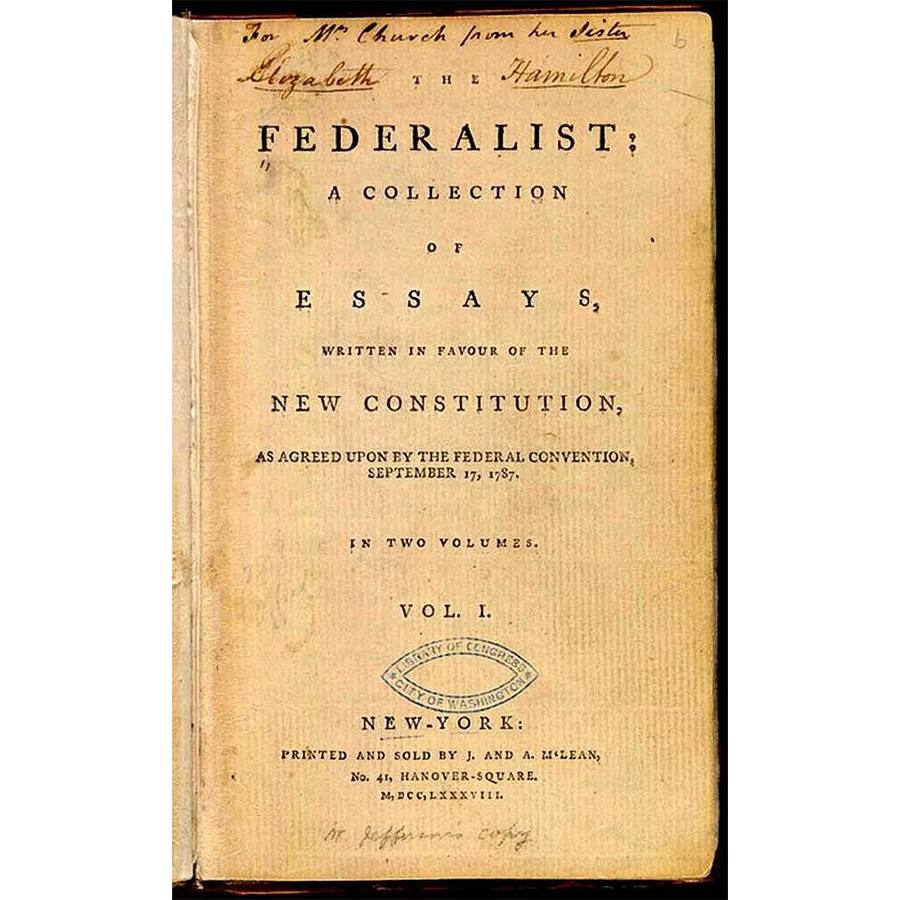 △ 《联邦党人文集》初版(The Federalist):在美国政治写作史上,《联邦党人文集》堪称经典之作。它收录了开国元勋汉密尔顿(Alexander Hamilton)、麦迪森(James Madison)和杰伊(John Jay)三人85篇的着作,在争取美国宪法正式生效的努力中发挥了至关重要的作用。该书于1787年至1788年间出版,深入探讨新宪法的思想和概念,展现了思想如何塑造了美国早期的政治格局。
