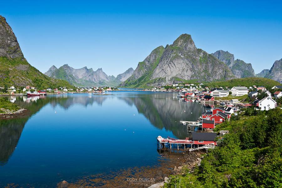 △ 挪威,罗弗敦群岛,雷讷(Reine, Lofoten Islands, Norway)︰雷讷是罗弗敦群岛上一个如明信片般美丽的渔村,座落在北极圈内。红色的渔民小屋建在平静的峡湾水面上,四周环绕着嶙峋的山峰。夏季的午夜阳光照亮了壮丽的景色,是皮划艇、徒步旅行和摄影的理想之地。虽然位置偏远,但雷讷拥有热情好客的社区居民和舒适的设施,周围环绕着原始的北方自然风光。