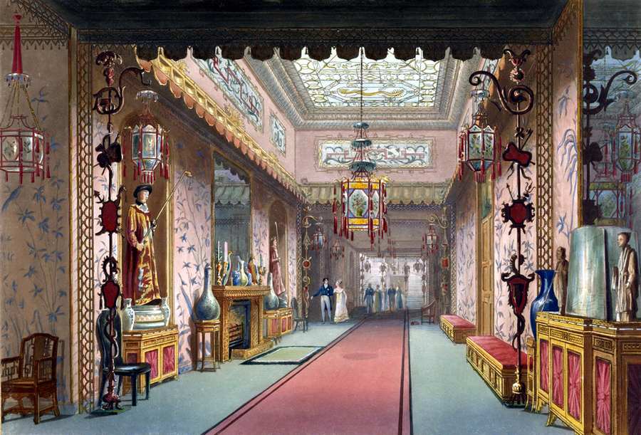 △ 在英国布莱顿(Brighton)的女王陛下宫殿(Her Majesty’s Palace)中的中国画廊,1820 年。
