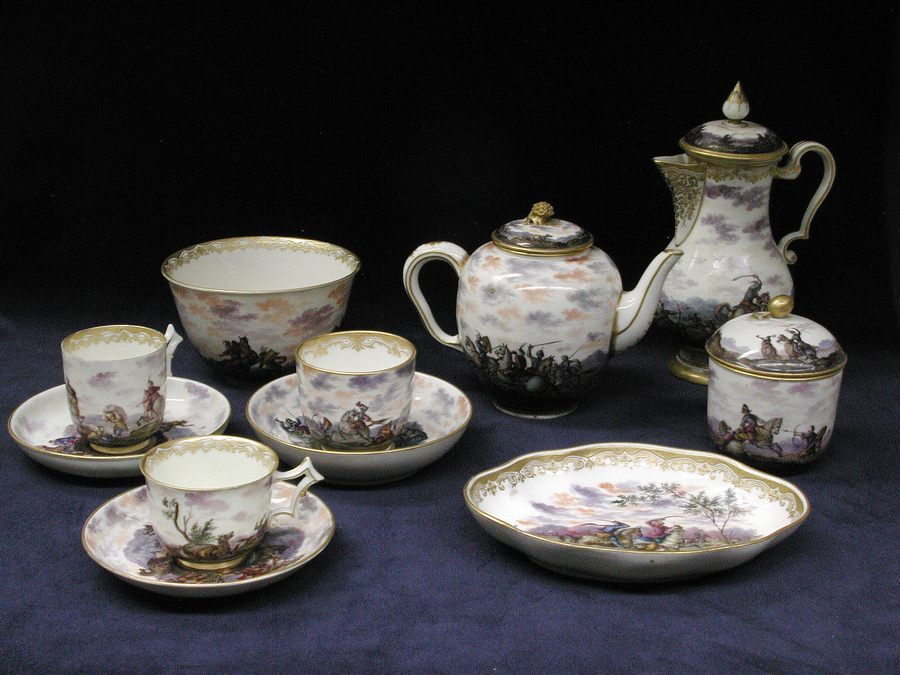 饮茶是上流社会的基本组成部分,也是品味高雅的女士们最顶级的时尚,需要搭配适当的中国风场景。在十八世纪当时,茶和糖是昂贵的商品,盛装茶叶的茶盒也就成为贵重物品。如过茶盒内有两个茶罐(绿茶和红茶)和一个更大的糖罐,搭配田园风光和意大利风情风景,加上粉红色底色上的洛可哥镀金,可以营造出华丽的效果。