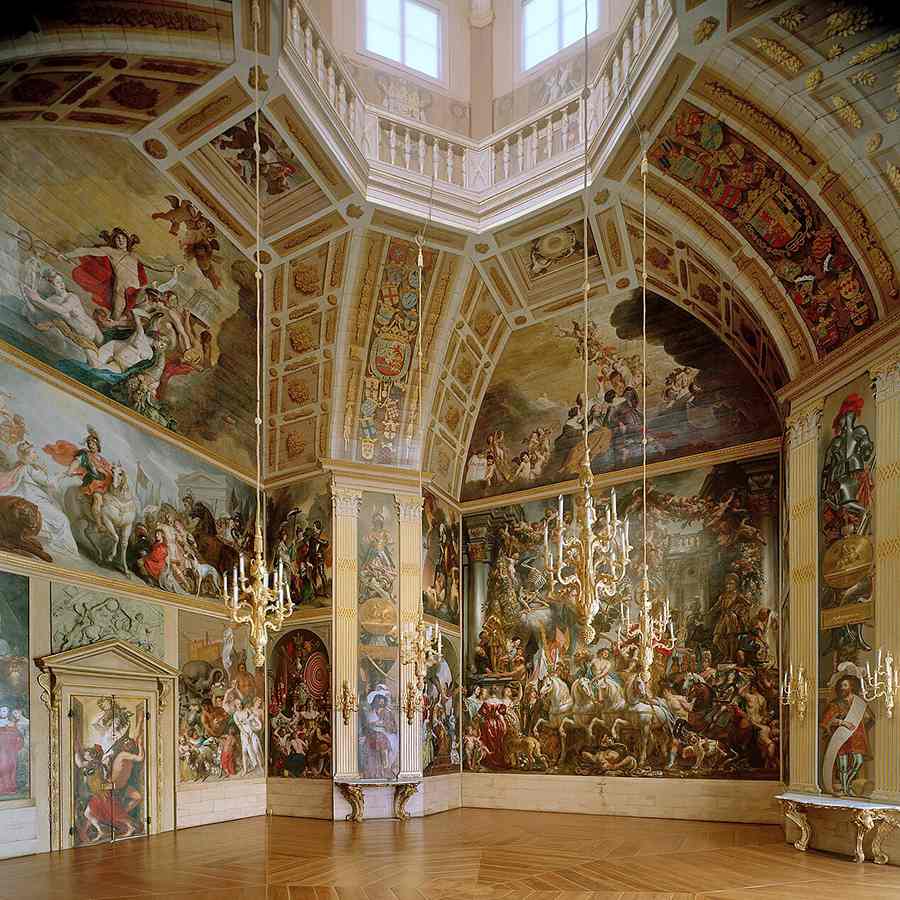 【新三才编译首发】「橘厅」(Oranjezaal,或译为「奥兰治厅」,如上图)。这座历史悠久的宴会厅位于荷兰海牙(Den Haag)的豪斯登堡宫(Huis ten Bosch),是为纪念奥兰治亲王腓特烈.亨德里克(Frederick Henry, Prince of Orange)而建造,以精美的巴洛克风格绘画闻名。此厅堂装饰着大量描绘奥兰治家族历史的壁画,是荷兰黄金时代艺术的代表作。