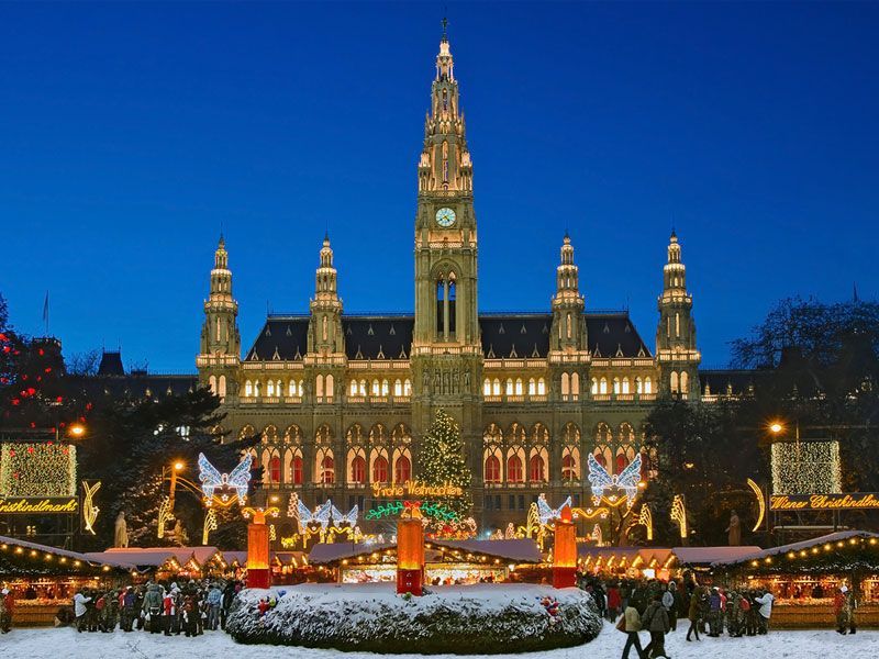 在维也纳你能感受到一个愉快的老式圣诞节,空气中充满了热葡萄酒的气息,灯光闪烁的节日装饰覆盖着宫廷式的建筑和三个室外圣诞市场。游客可以自己挑选众多的假日专用工具和装饰品,外加美味的小食品和美妙的五香热葡萄酒。当然,维也纳童声合唱团的音乐会也是假日期间不可缺少的一道风景线。