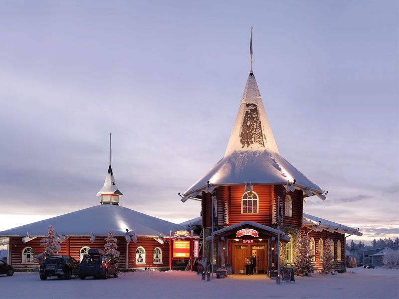 芬兰拉普兰的罗瓦涅米也许是全世界最好的庆祝圣诞节的地方。由于该地位于北极圈以北,芬兰人认为圣诞老人会更喜欢在这里居住。在覆盖着厚厚的积雪的松树林的冬季仙境遇到圣诞老人实在是别有情趣的事。在这里,孩子们可以和Santa Clause太太一起做饼干,甚至报名参加精灵学校。这里的其它节日亮点包括哈士奇狗拉雪橇,在厚厚的积雪中滑行;观看北极光,或在Sirmakko驯鹿农场乘坐驯鹿拉雪橇。如果你想有一个特别的冰冷体验,你可以入住北极冰雪酒店,它完全由冰和雪建成。好在酒店有热水浴和桑拿设施,多少还是抵消了一些冰天雪地的感觉。