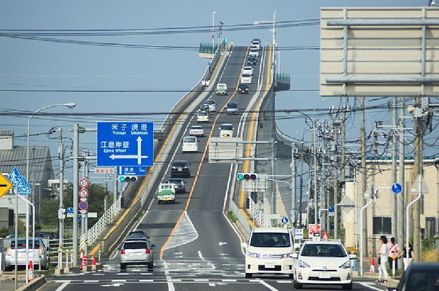 日本,江島大橋(Eshima Ohashi Bridge, Japan):您是否夢想過要開車上山,向上,向上,再向上,到了山頂時,突然墜落懸崖般往下行駛?當您經過日本的江島大橋肯定會給您一種「似曾相識」(Déjà vu)的感覺。這座橋被暱稱為「過山車橋」(the Rollercoaster Bridge),有144英尺高度的上升和下降,讓您不自覺地像似要舉起雙手尖叫。如果您想來一次有氧運動,這座橋的兩側也都有行人步道/自行車道。