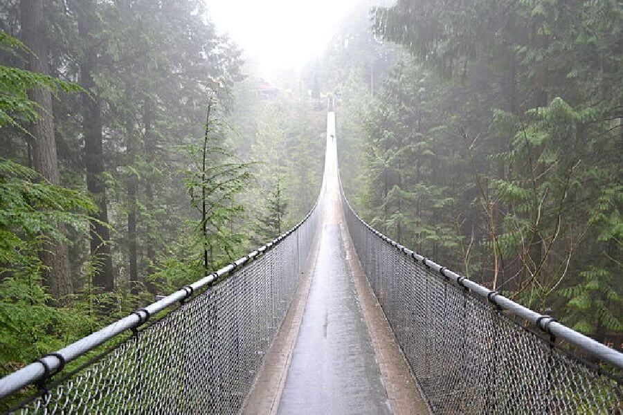 加拿大,溫哥華,卡匹拉諾吊橋(Capilano Suspension Bridge, Canada):如果您還沒有嘗試過森林中的橋,那麼,溫哥華的卡匹拉諾吊橋可以讓您一試。它有堅固的混凝土底座、金屬圍欄,讓您對過橋充滿信心。這座橋位於卡皮拉諾河上方230英尺的高度,橋長460英尺,因此,您必須將注意力從腳下的高度移開。