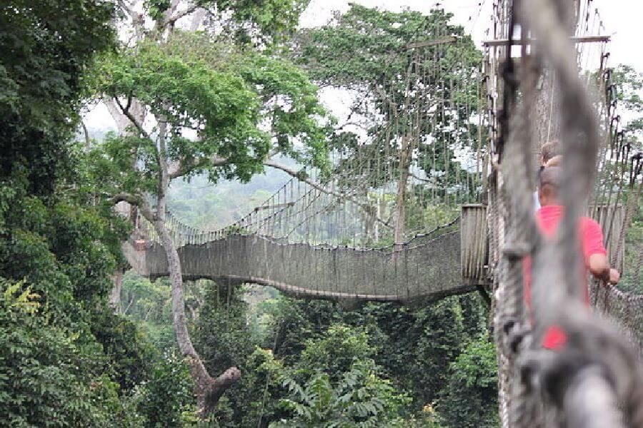 加納,卡諾匹步道(Canopy Walk, Ghana):乍看之下,加納的卡諾匹步道可能會讓您搖頭說:「沒辦法」。它的長度近2英里,懸在空中40英尺高處。但是,它有安全網、鋁線和堅固的木板可讓您感到安全一些。