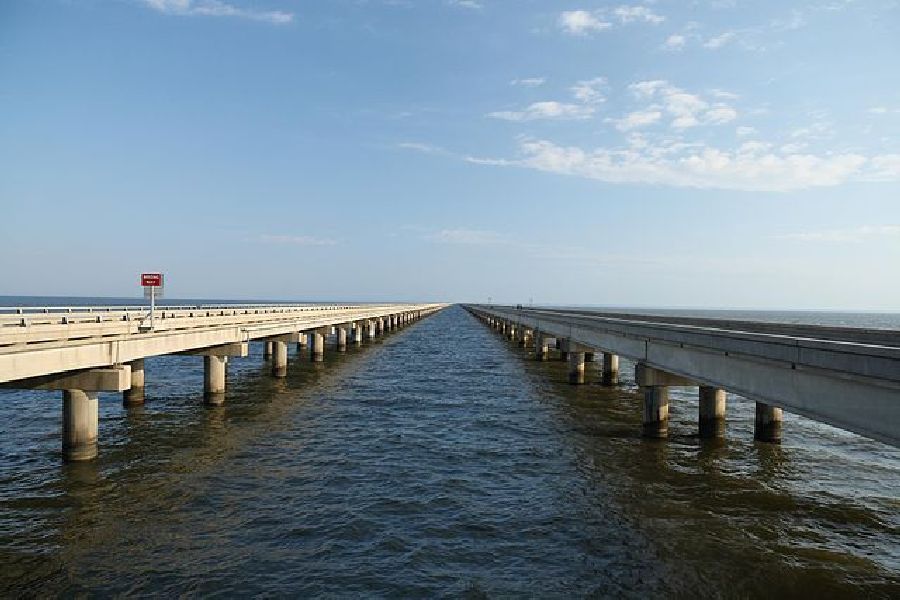 美國,路易斯安那州,龐恰特雷湖棧橋(Lake Pontchartrain Causeway, Louisiana):一旦您開始走上這條連接梅蒂里(Metairie)和曼德維爾(Mandeville)兩地的龐恰特雷湖棧橋,您可以近24英里的時速緩慢通過。在幾英里之外,除了周圍渾濁的湖水外,您什麼都看不到。為了盡快過橋並避免任何不舒服的感覺,提前留意這座橋樑最新的交通狀況是個好方法。